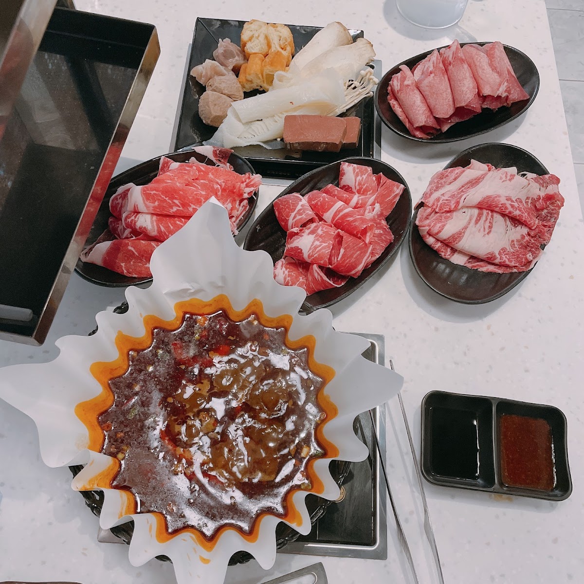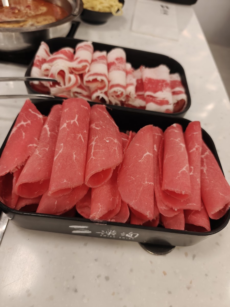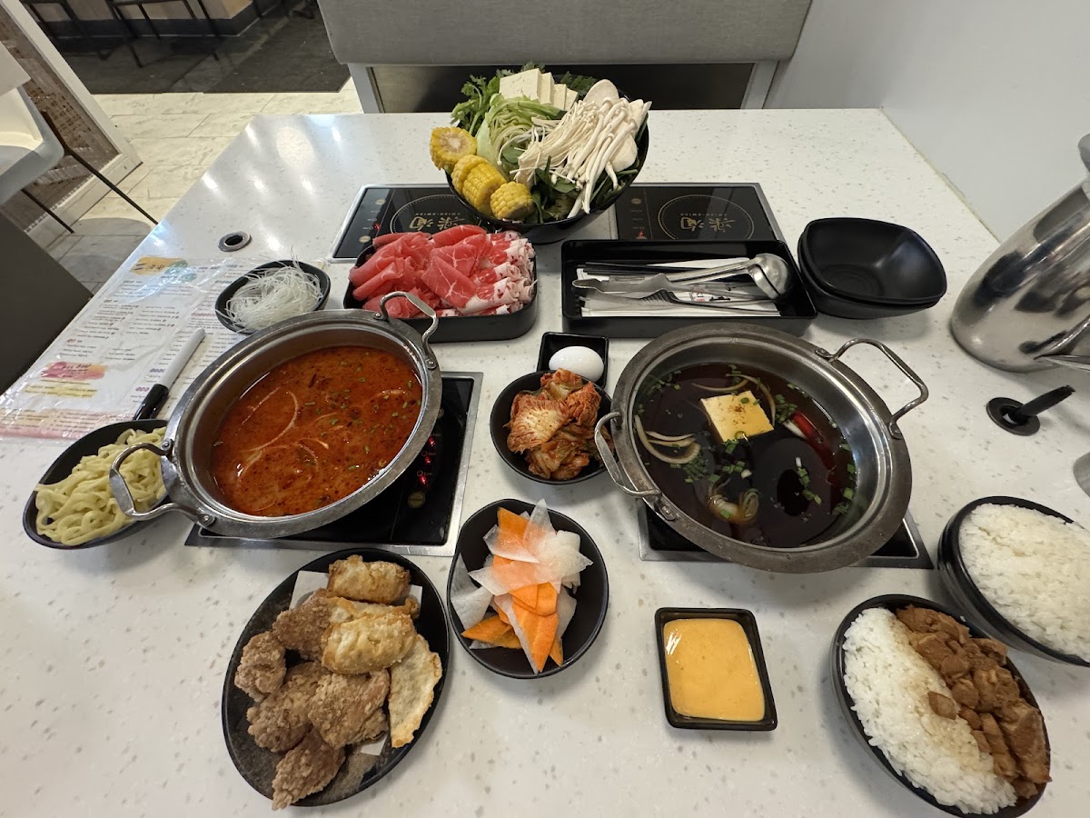 The menu here carries a solid variety of broths and fresh ingredients, from rich Wagyu beef and pork belly cuts to flavorful options like oyster and several spicy Sichuan and Taiwanese broths. Vegetables and mushrooms, including king oyster mushrooms, Napa cabbage, and sliced pumpkin, round out the offerings, keeping it balanced for meat lovers and plant-forward eaters alike. The hot pot concept lends itself well to a warming, communal meal, but with the twist of individual pots, it’s especially suited for friends or family gatherings where customization matters.